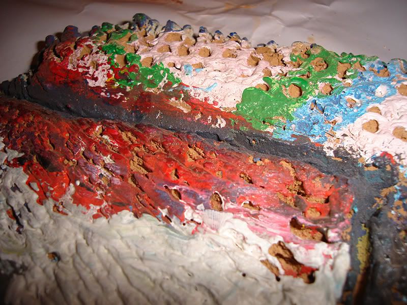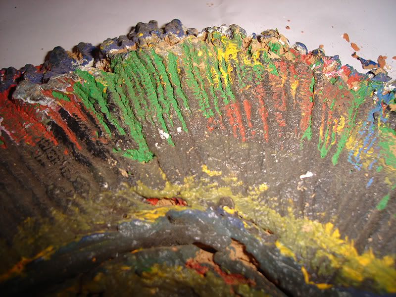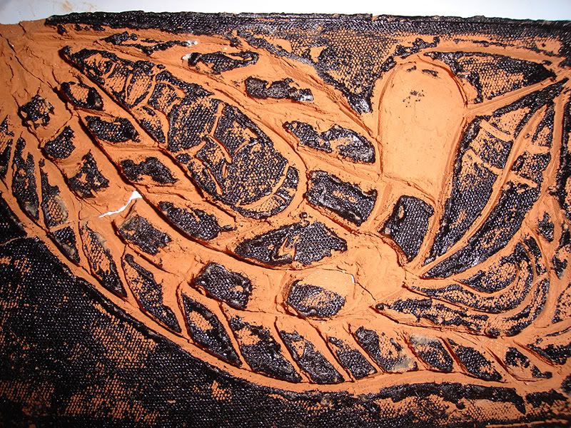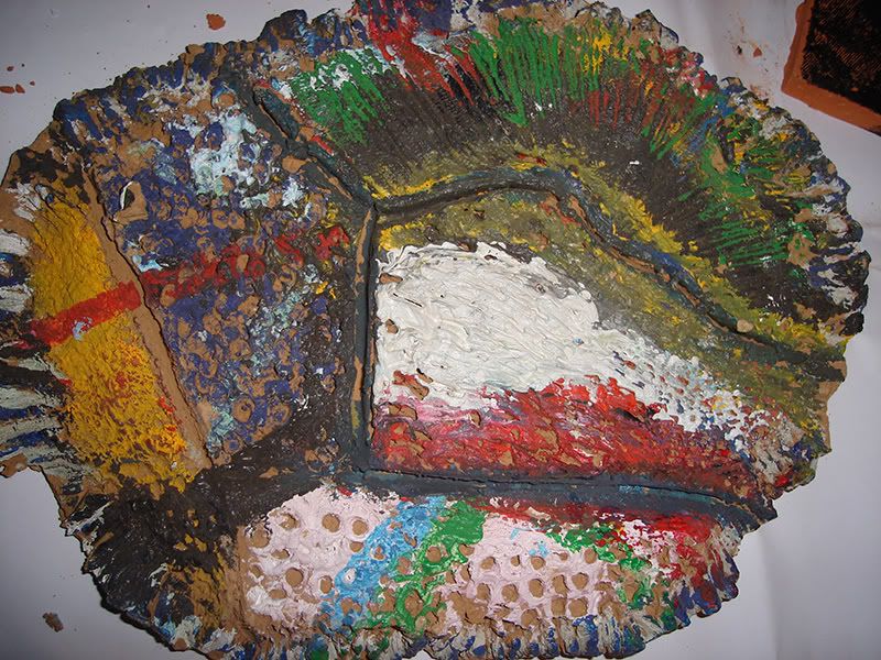 Recuerdo haber usado la arcilla como pigmento sobre pliegos de papel, tambien se usó tipos de piedrilla o polvo de arcilla para texturizar diseños sobre papel usando recina. De esto solo conservo un boceto muy primitivo...