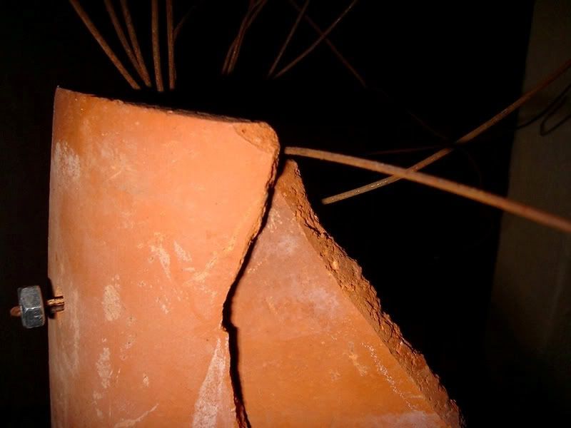El primer trabajo grupal, si lo recuerdo bien se trataba de utilizar fragmentos de teja. Nosotros usamos alambre y perforamos arduamente para conectar cada parte.