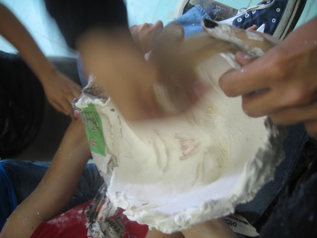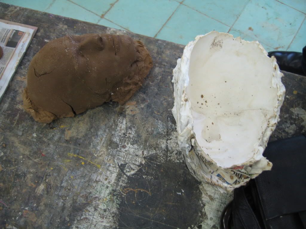 De la pasta seca se obtiene el molde, luego con la arcilla me dispuse a hacer la mascara...