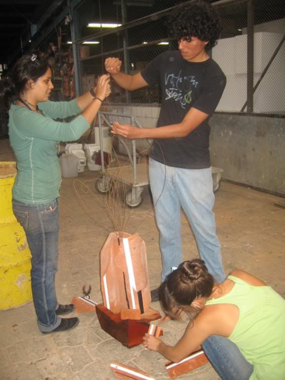 Para concluir, el ultimo trabajo grupal. Se trataba de construir una base de naturaleza arquitectonica fundamentada en el bahareque, ese fue nuestro metodo. Usamos alambres, y palos de bambú.